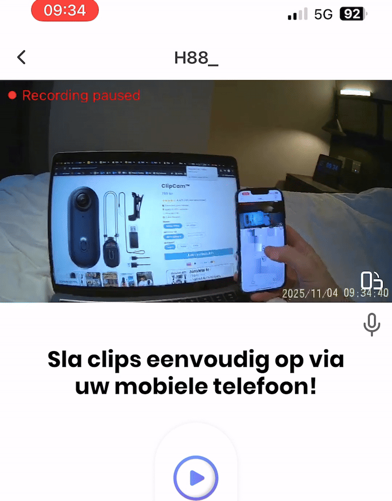 Met ClipCam kunt u vanuit uw eigen hoek opnemen in 4K/HD, volledig zonder dat u uw handen nodig hebt.